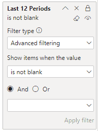 Now you can add the new field to the visual, page or report filter as required. Make sure to filter it as where it is not blank.